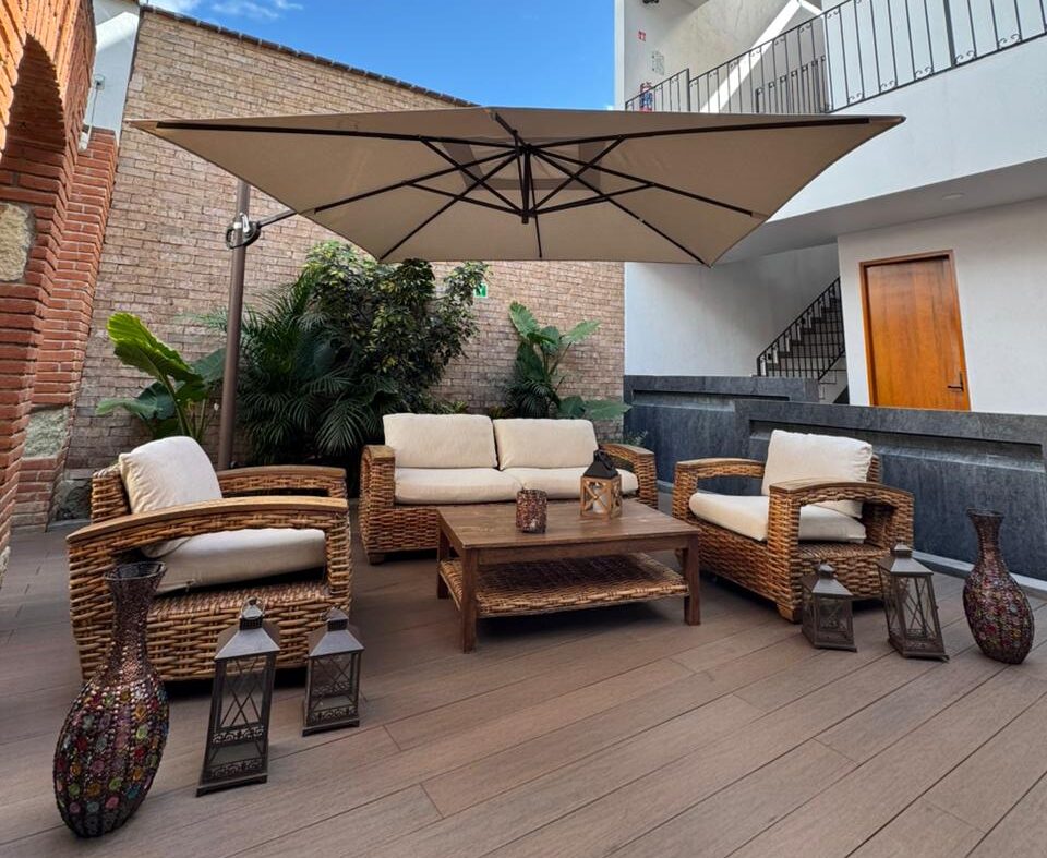 Los arcos son el símbolo de esta casa, elementos decorativos que, junto con las artesanías oaxaqueñas, hacen de este lugar un recinto sumamente apacible y cómodo.Durante la remodelación del espacio, se descubrieron más arcos que, por la exquisitez de su arquitectura, se decidió conservar. Además, hay un hermoso jardín con bar. El patio y su interior fueron decorados cuidadosamente para ser el lugar perfecto donde disfrutar de un atardecer, degustar un buen mezcal o simplemente admirar el cielo oaxaqueño