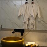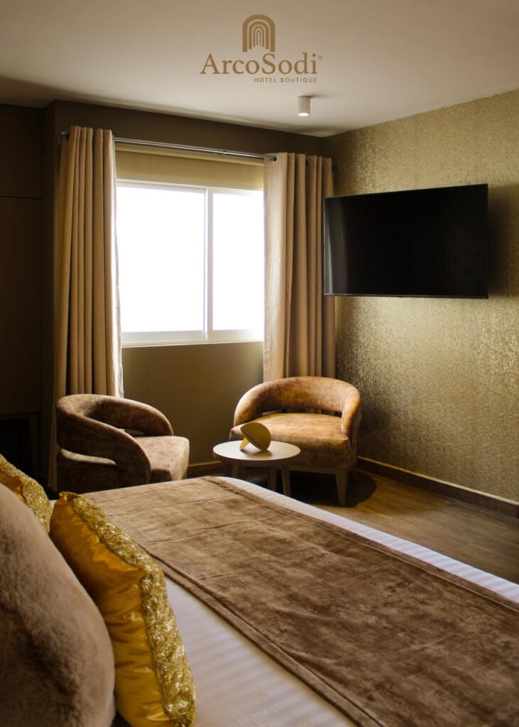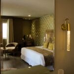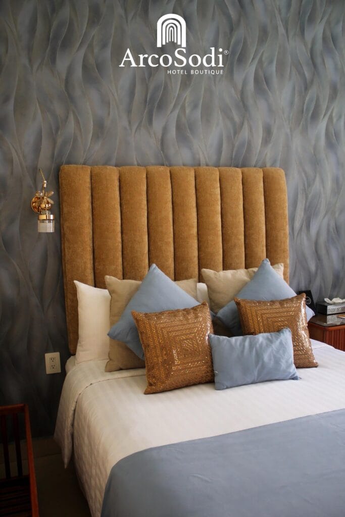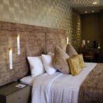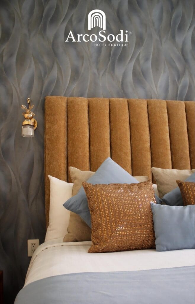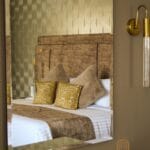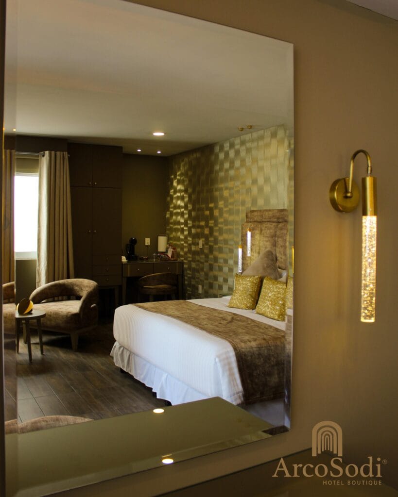 Un refugio de lujo, sofisticación y elegancia decorada con tonos dorados que reflejan la opulencia.